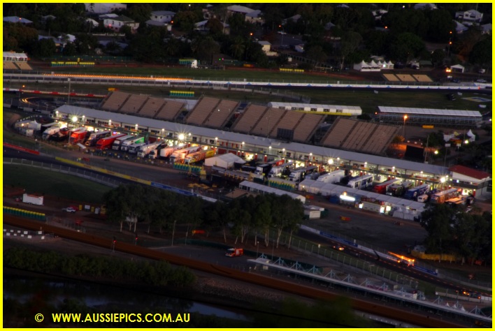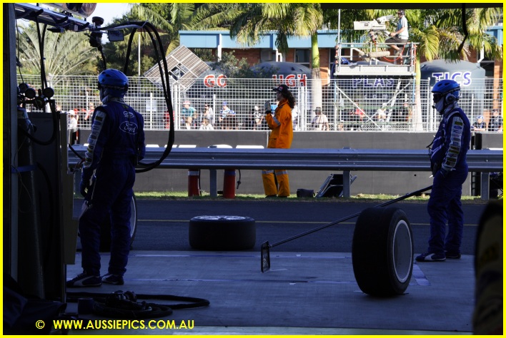 Down pit lane after practice.